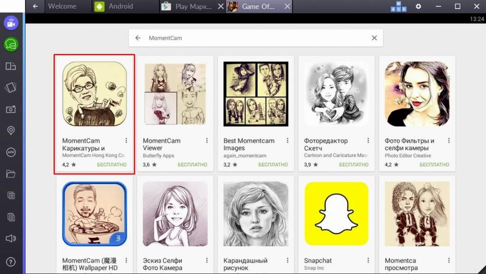 Приложение по изменению фотографий позиционируется как развлекательная программа для Андроид-устройств, но это никак не мешает установить ее на ПК. Да, в таком случае вы лишитесь возможности редактирования свежего фото с камеры телефона, но возможность загрузки уже имеющихся материалов никуда не исчезает. Для установки MomentCam на Windows потребуется эмулятор Android в лице BlueStacks. Подробнее об эмуляторе читайте здесь.